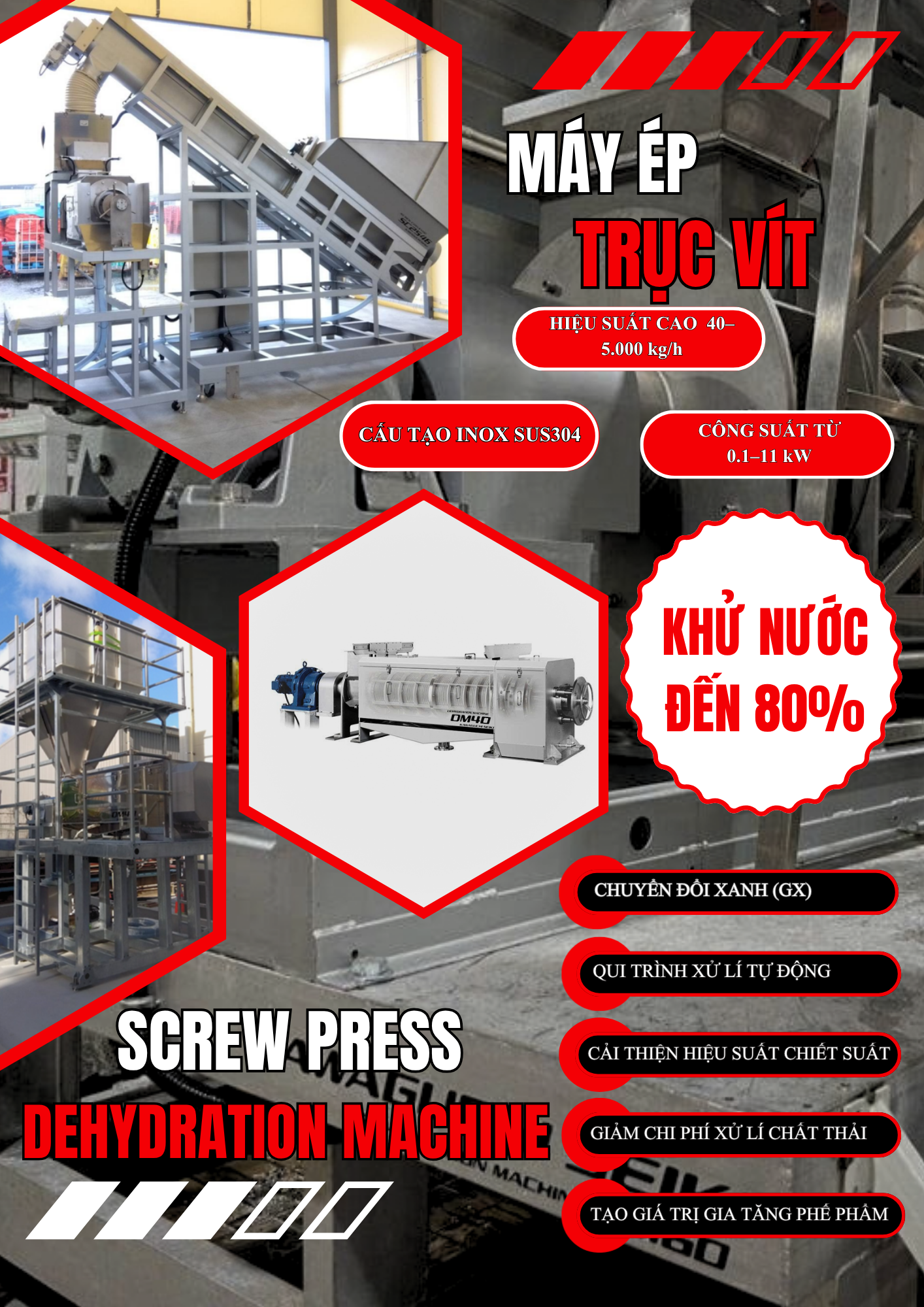 KAWAGUCHI SEIKI (Nhật Bản) và ALPHA VINA hân hạnh giới thiệu một giải pháp đột phá lần đầu tiên có mặt tại Việt Nam: Máy Ép Trục Vít Khử Nước (Screw Press Dehydration System) thế hệ mới.