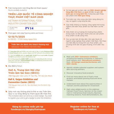 Chỉ còn hơn 1 tuần nữa, sự kiện VIETNAM FOODEXPO 2025 – Triển lãm Quốc tế Công nghiệp Thực phẩm Việt Nam tại Hồ Chí Minh lớn nhất sẽ chính thức khai mạc (Ngày 12 đến 15/10/2025). Đây là cơ hội không thể bỏ lỡ để các doanh nghiệp tiếp cận những giải pháp công nghệ tiên tiến, đặc biệt trong lĩnh vực tự động hóa thực phẩm và tối ưu hóa quy trình chế biến.