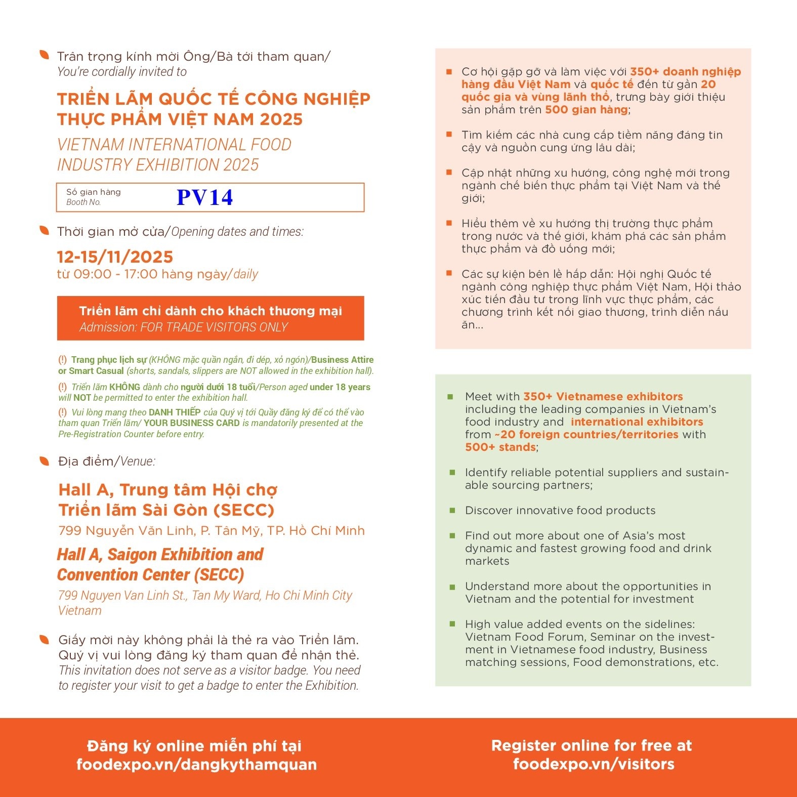 • Địa điểm: Gian hàng PV14, Trung tâm Hội chợ và Triển lãm Sài Gòn (SECC), 799 Nguyễn Văn Linh, Q.7, TP. Hồ Chí Minh.